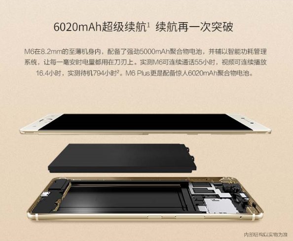 M6既配備了驚人的大容量電池,又實現了機身8.2MM的舒適厚度,打破了大容量電池與輕薄機身矛盾體的傳統。