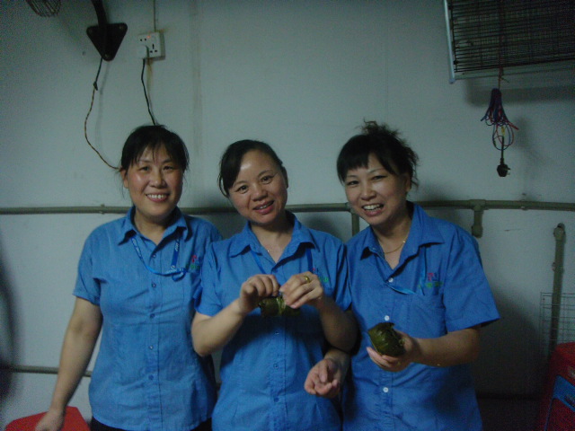 6月3日晚18:30,在主持人響亮的哨聲下,緊張的包粽子比賽開始了。巧媳婦女子組共24人參賽,新酷男男子組共18人參賽。不會的,現(xiàn)場學(xué);會的,現(xiàn)場教。長的短的,大的小的,三角形的,長柱形的,各式各樣,匯聚的是合航人的歡聲笑語。